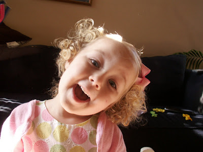 I convinced Hayden to let me put curlers in her hair Saturday night so her hair would be fancy on Sunday! It took her big sister begging for them for her self to get Hayden to agree. (Hayden doesn't like anything to maker her ichy, or at all uncomfortable.) I loved the end result. They were pretty tight curls in the morning but with in a few hours they had relaxed a little bit giving her the cutest head of curls ever... if only it lasted longer! She got lots of compliments so maybe she will let me do it again!!!