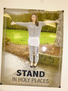 In January's New Era there was a new Mormon add (Posters that help the youth remember what they stand for or like an object lesson in one picture) This new add was for the theme and the boy was standing some where and the temple was his shadow. Sister Jackson and I saw it and both got so excited about it and thought it would be amazing if we could do that with all our girls. It all developed into this amazing night! We asked a wonderful couple in our ward who are photo shop wizards, we took the pictures and they fixed them up with the words and the temple shadows. It was truly a miracle that they did such an amazing job and we got ALL the girls done on time! They really did turn out beautifully and the girl got to take them all home to hang on their walls. My pictures of their pictures may not be as great but in person they were amazing. Our idea was for them to each choose a place where ever they wanted, and they were going to think about how the Young Women Values help them stand in holy places where ever they are. Then during the program they each took a turn and said how the values help them do that. They all did an amazing job. They amaze me all the time but this night they knocked it out of the park.